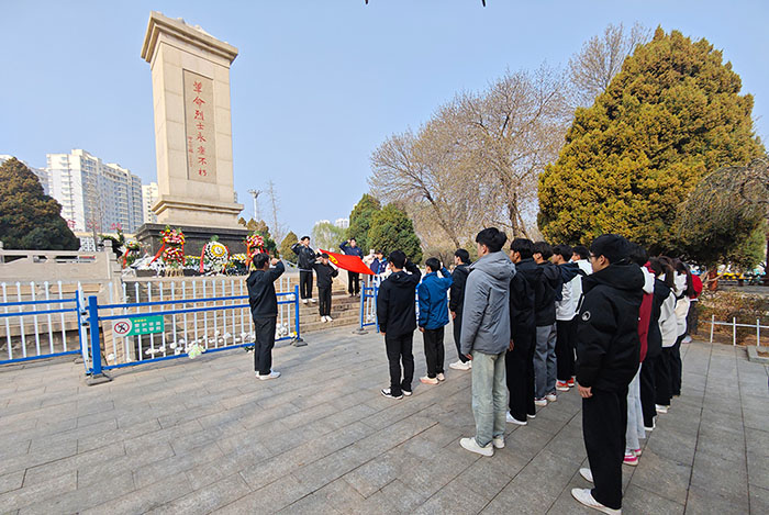 sunbet“青马工程”青山班明向校区学员4月4日早晨八点前往位于晋中市榆次区迎宾街站南路榆次火车站站前公园内的榆次革命烈士纪念碑进行清明祭奠活动。