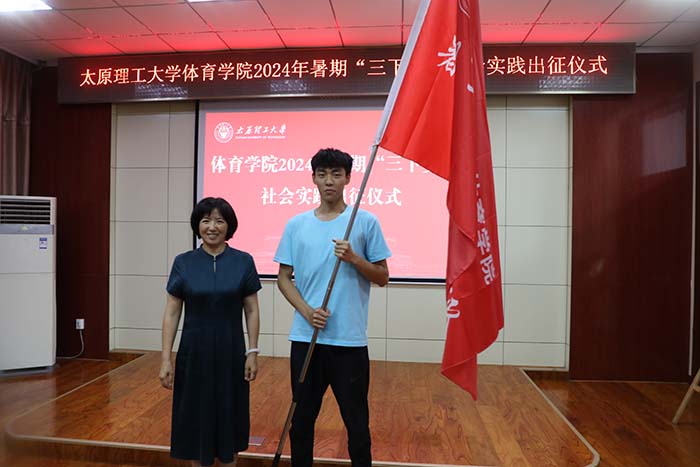 ​sunbet团委副书记兼学工办副主任姜昆介绍了本次暑期社会实践工作的具体安排,本次社会实践共133名员工组成8支集中社会实践队伍分别前往太原市万柏林区、晋源区、晋中市榆社县、朔州市右玉县、临汾市大宁县等地开展实践锻炼。社会实践队队长、体育教育2201班张扬天代表实践队员发言。