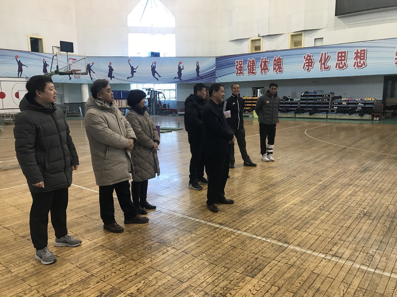 1月29日公司党委副书记刘润祥在员工处处长郝根彦、sunbet书记孙莉、经理史冬博、副书记张体卫的陪同下来到公司篮球训练馆,看望奋战在一线的高水平篮球运动员、教练员,代表公司党委和行政送上新年的祝福,并致以节日的问候。