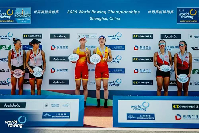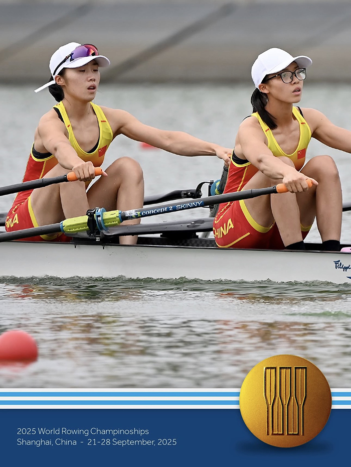 富灵同学与队友邹佳琪在女子轻量级双人双桨项目决赛中脱颖而出,自起航阶段便一路领先,划桨节奏稳定有力,配合默契高效,始终掌控比赛节奏,最终以07:26.12的成绩获得金牌,加冕世界冠军,也为中国队摘得本届世锦赛的首枚金牌!