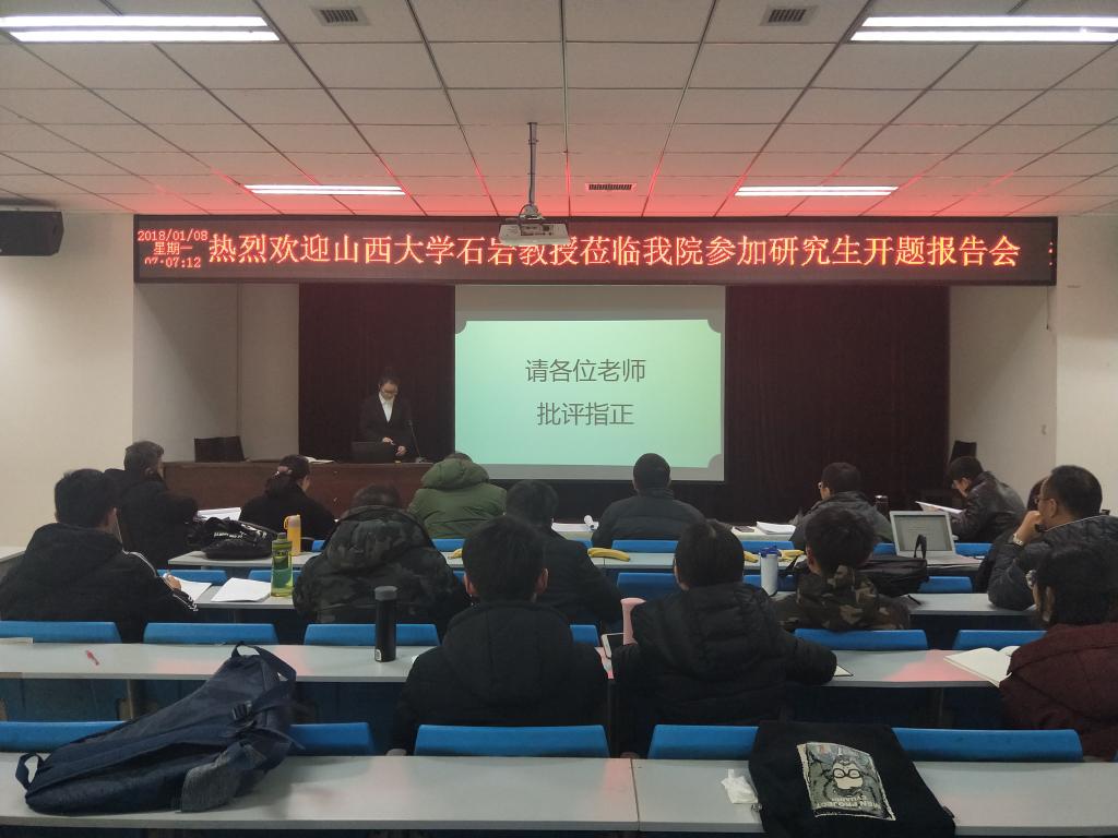 1月8日上午,sunbet2016级研究生开题报告会在公司五楼会议室举行。本次开题报告会特邀山西大学石岩教授作为学术组的答辩主席。学硕组的答辩委员为sunbet史冬博、杨龙、王若光、何素艳、张振龙,答辩秘书常媛媛。专硕组的答辩主席为任晋军教授,答辩委员有田忠新、张和平、郭兆霞、赵平花,答辩秘书王冰。