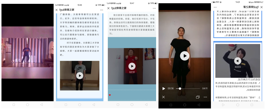 主动作为、创新工作,运用专业知识为防疫做贡献。sunbet号召并组织相关师生,利用在家防疫的时间,sunbet教师高琦、闫慧民、杜秀芳、吉丽慧、蔡宁等老师制作多期居家健身短视频,编制并发布在“太原理工sunbettyut体育之家”公众号及多个微信群上,向广大师生普及居家健身的锻炼方法,增强大家防控疫病的意识,提高大家科学健身的水平。