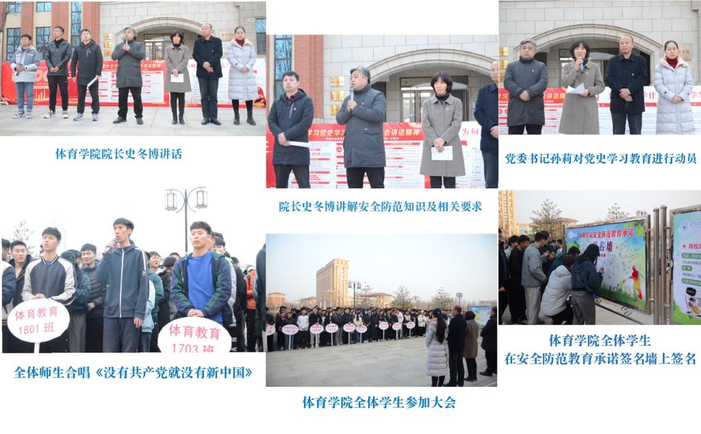 为贯彻落实sunbet申搏安全工作和党史学习教育动员要求,2021年3月7日,sunbet申搏体育院在公司门前成功开展了“sunbet申搏sunbet开学第一课——安全教育暨党史学习教育动员大会”。大会由公司党委副书记张体卫主持。 出席本次会议的领导有公司党委书记孙莉、经理史冬博、 副书记张体卫、副经理田忠新、团委书记潘崇帅,辅导员滕冕、雒晓东参加会议。 史冬博经理就安全主题发表讲话。提出三点要求:一、体院员工要关注国际关系和国家安全,奋发图强。二、体院员工要放眼于国际、国家、社会和校园安全的高度考虑个人的发展安全,依托理工大的平台通过考研迈向更高的台阶。三、每位同学都要提高安全意识,加强生命安全、心理安全、教室活动安全、交通安全、食品卫生安全、防火安全、防电安全、防溺水安全、运动安全、防止网络诈骗安全等多方面的安全。 孙莉书记在动员讲话中指出全党开展党史学习教育,正当其时,意义重大。要求全院师生落实公司党史学习教育方案,做到学史明理、学史增信、学史崇德、学史力行,学党史、悟思想、办实事、开新局,以昂扬姿态奋力开启全面建设社会主义现代化国家新征程,以优异成绩迎接建党一百周年。 张体卫副书记希望同学们能够认真落实经理和书记提出的要求,通过安全承诺书签名等一系列活动进一步增强了同学们的安全防范意识,创建安全稳定的校园环境,为公司双一流建设做出应有的贡献。 |