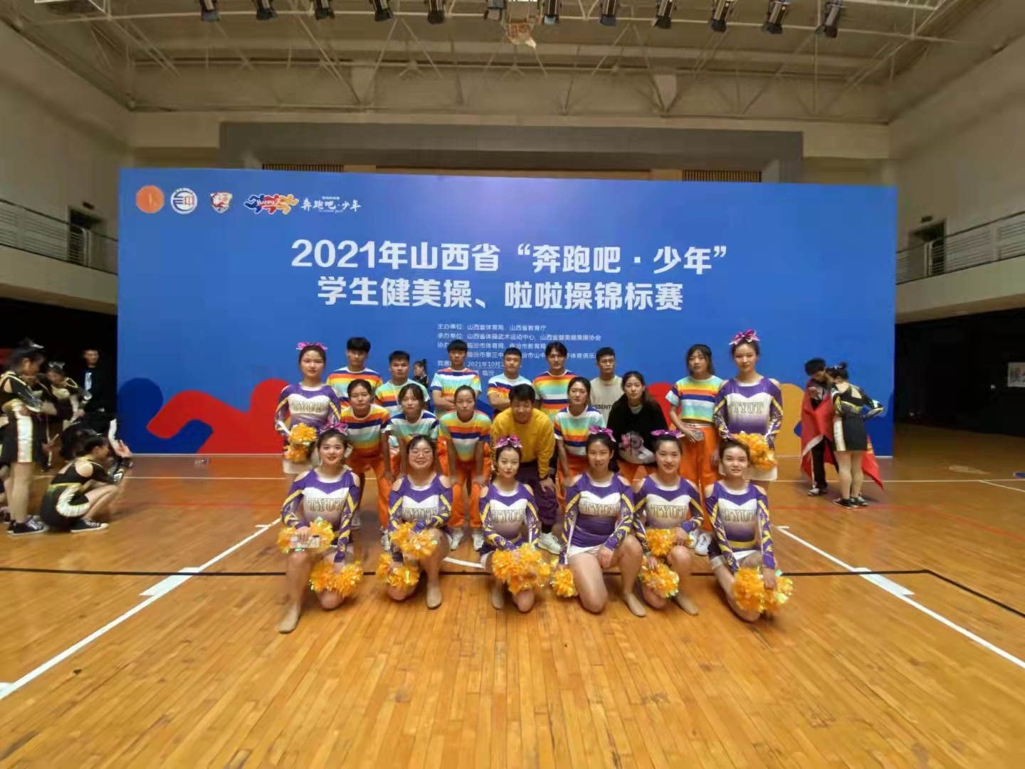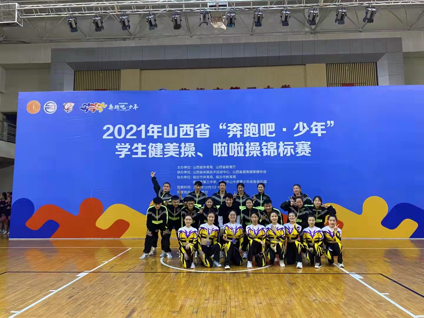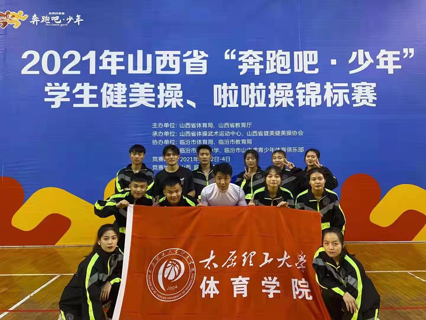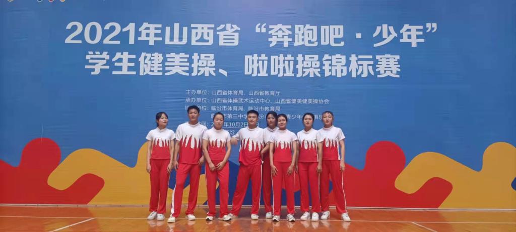 2021年10月2日至10月5日,山西省体育局、山西省教育厅主办,山西省健美操协会、山西省体操武术运动中心承办的2021年山西省“奔跑吧·少年”员工健美操、啦啦操锦标赛在山西省临汾市临汾三中举行,此次比赛历时3天,设有小学组、中学组、大学普通院校组、体育院校组、高水平组共5个组别,包含竞技健美操、有氧健身操、时尚健身课程、街舞、啦啦操等6个竞赛项目,共有来自全省54所公司的1050名运动员参赛。