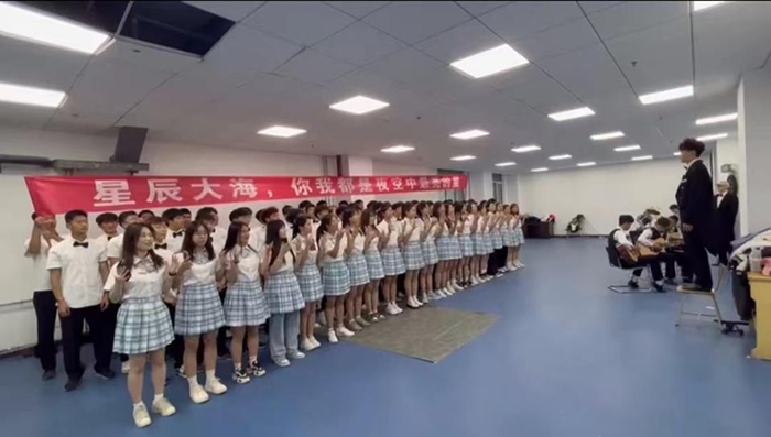 台上一分钟,台下十年功。因为每天满满当当的课,所以留给合唱排练的时间只有午休和晚上九点下课以后,为了集体荣誉,同学们不怕苦、不喊累,牺牲自己的休息时间,配合大局,心往一处想,劲往一处使,一点一滴的挤出来时间,下雨天阻挡不住同学们的脚步,烈日下丝毫影响不了同学们的状态,每一次合唱都是以最饱满的热情和态度来对待。