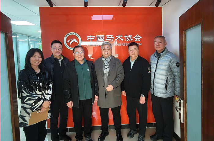 2024年3月18日,史冬博经理一行赴中马国术协会进行交流,拜会中国马术协会党委书记成庆。双方就公司运动训练专业,尤其是马术专项建设、人才培养、团队配备、科学研究等问题进行了交流,探讨了组建校马术队参加2025年全运会的可能路径。双方一致同意就上述内容积极展开合作,共同推动马术运动与高等教育对接,提升马术运动员教育和技能立平,助力行业发展。公司张振龙、郭俊安老师,中马协马佳玥、侯天博部长参与交流。