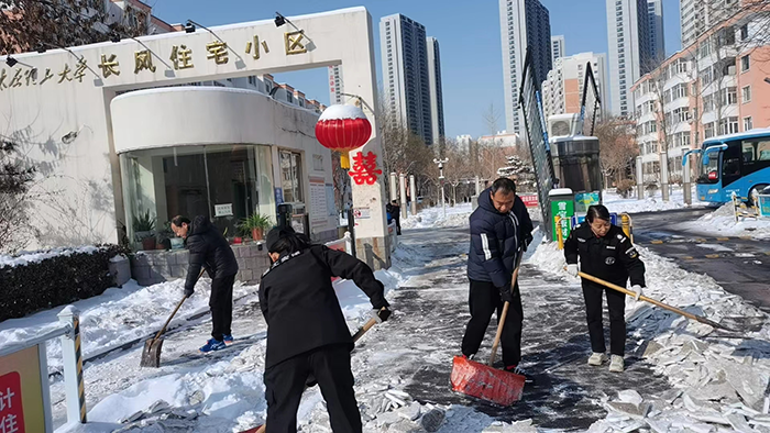 2024年2月20日~21日,山西省气象台对山西中部多地陆续发布寒潮、大风蓝色预警、道路结冰黄色预警和暴雪橙色预警信号。山西省太原市部分地区积雪厚度已达18厘米,给居民的出行和日常生活带来诸多不便。为了积极应对新一轮的寒潮雨雪冰冻天气,充分发挥基层党组织战斗堡垒作用和广大党员先锋模范作用,公体部党支部迅速行动,发出扫雪除冰倡议书,呼吁全体教师党员根据各自住宅小区实际情况,自觉清除门前积雪,第一时间投入到小区公共区域扫雪除冰活动,为道路安全畅通贡献一份力量。同时党支部书记赵平花老师组织住在理工大长风小区的sunbet教师,开展铲雪除冰志愿服务活动,协助小区物业人员进行扫雪除冰工作,确保居民的出行安全。