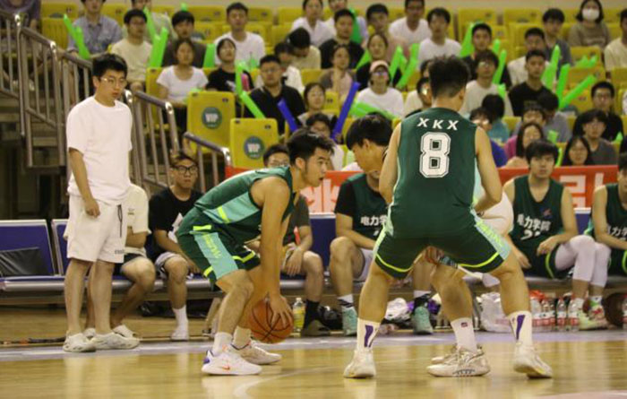 落幕与晚风作伴,篮球与青年相随。当一声清脆的哨响拉开了冠亚军争夺赛的序幕,每一位参赛选手都发挥出了最好的技术,紧张的氛围、灵活的脚步、激动的呐喊声,运动员们展开了激烈的比拼。体育馆内一派紧张热烈的欢腾景象。交错变换的步伐奏响出动人的乐章,翩飞起舞的弧线是篮球的翅膀,击打地面的篮球碰撞出激情的火花,努力拼搏的身影是写在青春篇章里的诗行。运动员们用精彩非凡的表现演绎了奋斗的姿态,凝结勤奋的汗水,展现出自信的风采。