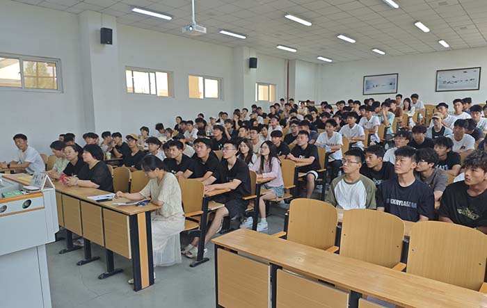 王君洁在讲话中强调选课、成绩等教学事务性工作,指出同学们应遵守规则、严于律己,并鼓励同学们主动思考未来,明确学业规划,利用好公司提供的学习资源,掌握丰富的专业知识,培养过硬的专业能力,注重自我提升和全面发展。