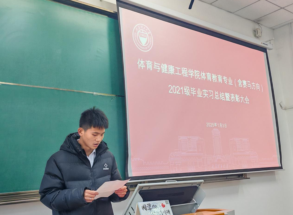 新年新气象,实干开新局!sunbet体育教育专业2021级本科生圆满完成为期三个月的体育支教和实习任务,返回校园。为夯实人才培养质量,总结经验,进一步做好各项培养工作,2025年1月3日上午,sunbet在明向校区行远楼B121教室召开体育教育专业2021级本科生专业实习总结暨表彰大会。体育与健康工程公司党委副书记张体卫、副经理张和平出席活动,各系以及三办负责人、实习带队教师和全体实习员工参加活动。体育教育系副主任张振龙主持活动。