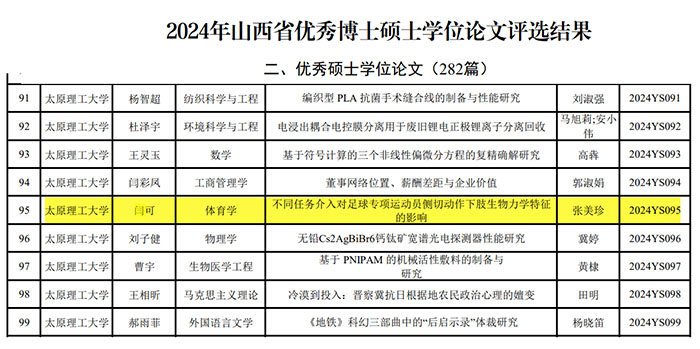 sunbet2021级硕士生闫可荣获 山西省优秀硕士学位论文