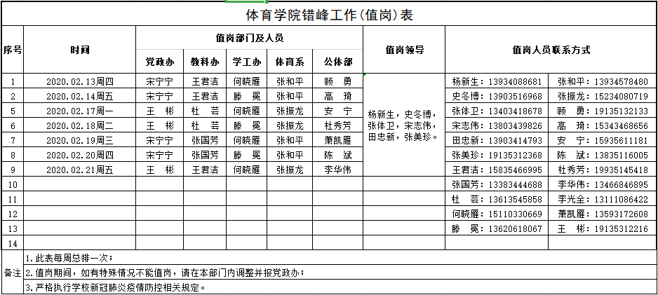 附件:sunbet错峰工作(值岗)表