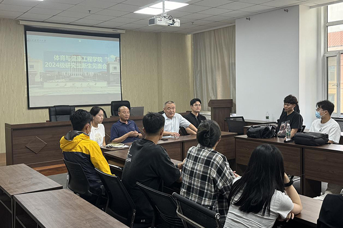 李永福书记对新生表示了热烈的欢迎,提示同学们要铆足干劲,从新出发,树立远大目标,努力奋斗,敢于创新,提升自身素质,用全新姿态面对机遇与挑战。张体卫在见面会上对研究生提出远大希望,希望大家刻苦学习,在体育科研领域奋勇拼搏,为团队建设贡献力量,同时强调研究生班集体建设需要靠大家齐心协力,营造良好的学习氛围。田忠新表达了见到新生的喜悦,希望同学们努力学习不畏困难,并全身心投入科研中,研究生一年级要为科研、项目、论文等做好规划,稳步前行。姜昆、滕冕向研究生新生讲解了研究生入学报到相关工作,对接下来入学教育系列活动进行了安排。