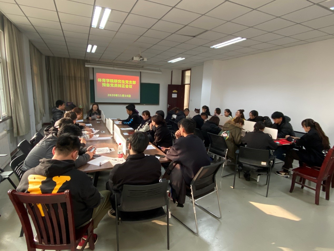 20201116日下午2点,​sunbet503研究生教室召开了关于刘瑞瑞、孙楚、凌霄、逯文莉四位同志的转正会议。本次会议共有32名党员参加会议,其中有21名正式党员,11名预备党员。会议由支部书记何晓雁主持。
